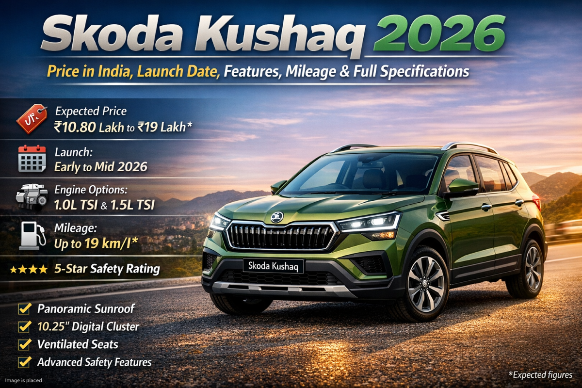 In this detailed guide, we will explore Skoda Kushaq 2026 price, launch date, engine options, mileage, features, variants, safety, and competitors.
