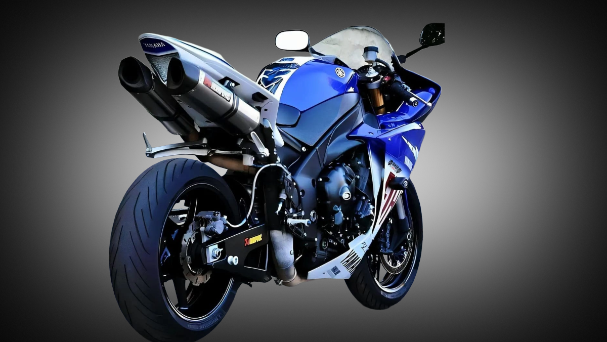 The motorcycle shown in the image is a Yamaha R1, one of the most iconic superbikes in the world. The aggressive rear profile, dual under-seat exhausts, sharp fairing cuts, and muscular fuel tank highlight its racing DNA. Designed for high-speed stability and aerodynamic efficiency, this machine blends MotoGP-inspired engineering with road-legal practicality.